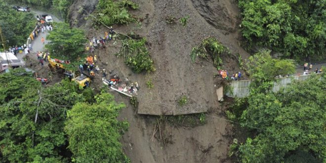 وأوضحت أنّه “من جرّاء هطول أمطار غزيرة إنهار جزء من الجبل وطمر العديد من المركبات التي كانت تسير على طريق يقع أسفله من بينها حافلة نقل عام كان على متنها 33 شخصاً، وسيارة كانت تقلّ ستة أشخاص ودراجة نارية كان على متنها شخصان”.