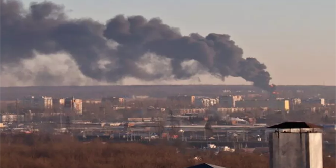 أعلن حاكم منطقة كورسك الروسية رومان ستاروفويت اليوم أن طائرة بدون طيار نفذت هجوماً قرب مطار كورسك غرب روسيا، ما أدى إلى اشتعال النيران في خزان نفط.