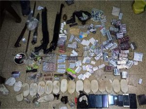 وأضافت الوزارة: “إنه تمت مصادرة 15 كف حشيش مخدر ودراجة نارية تستخدم في التنقل مع مسدس حربي وسلاحي صيد “بومبكشن” وقنبلة يدوية وسيف وشنتيانات وأجهزة خليوية كانت بحوزة المقبوض عليهم.