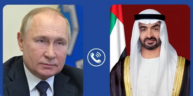 وذكرت الخدمة الصحفية للكرملين في بيان نقله موقع روسيا اليوم أنه تم التأكيد خلال الاتصال على التعاون الفعال بين موسكو وأبوظبي، في إطار مجموعة “أوبك بلس” بهدف تحقيق الاستقرار في سوق النفط.