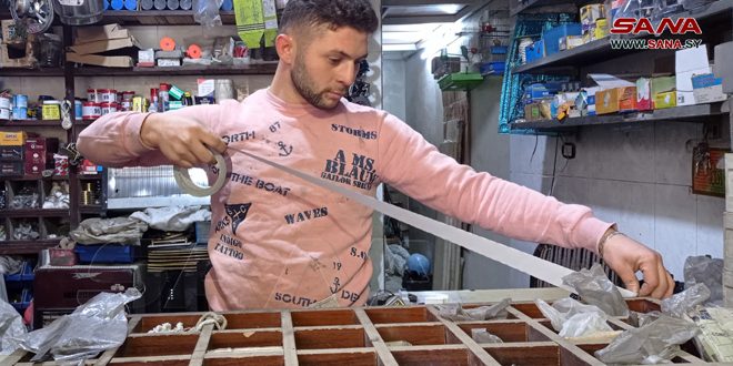 بهمة ونشاط يواصل جريح الوطن أنس لبان عمله الحرفي بصيانة وإصلاح المدافئ بأنواعها وحراقات الغاز و(القاظانات)، وبيع الأدوات الصحية والكهربائية وكل ما يتعلق بها من عدد صناعية في ورشته الصغيرة التي أعاد تأهيلها بحي صلاح الدين الشعبي متحدياً إصابته البليغة.