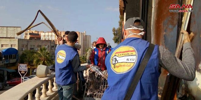 وبادر نحو 70 شاباً وشابة من قيادة فرع اتحاد شبيبة الثورة ورابطتي المدينة والمهنية والوحدات الطلابية والأحياء وكذلك متطوعو فريق أقحوان للتنمية المجتمعية إضافة إلى أعضاء مجلس مدينة صلخد وعماله إلى مساندة ورشات مجلس مدينة السويداء ومديرية الخدمات الفنية وعدد من المؤسسات الخدمية بأعمال التنظيف وترحيل الركام الناجم عن عمليات التخريب والحرق التي لحقت بمعظم مكاتب المبنى.