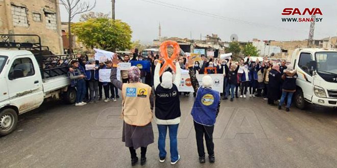 نظم فرع إدلب لجمعية تنظيم الأسرة بالتعاون مع مديرية الشؤون الاجتماعية والعمل في المحافظة، واتحاد الشبيبة، سباقاً في منطقة خان شيخون بريف إدلب المحرر بمناسبة اليوم العالمي للأشخاص ذوي الإعاقة، وفي إطار حملة الـ 16 يوماً لمناهضة العنف القائم على النوع الاجتماعي.