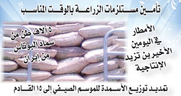 وأضاف أنه يستفيد من التمديد الجديد لتوزيع الأسمدة إضافة لأصحاب الحيازات المزروعة بالموسم الصيفي من لديه محصول البطاطا للعروة الربيعية مشيراً بهذا الصدد إلى أهمية الأمطار الهاطلة خلال اليومين الماضيين في تحسين واقع الزراعات الشتوية ورفع إنتاجيتها.