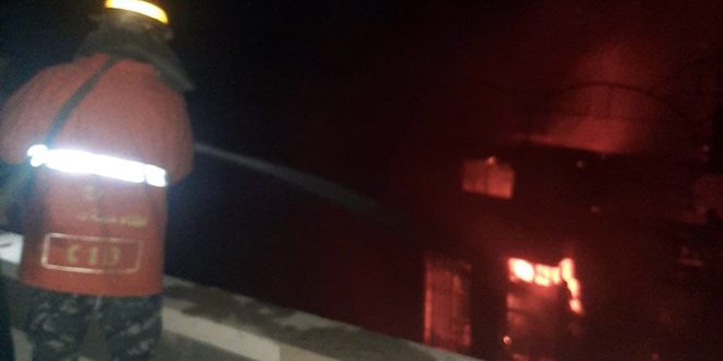 أخمد عناصر فوج إطفاء دمشق فجر اليوم حريقا اندلع ضمن خان الزيت بسوق مدحت باشا.