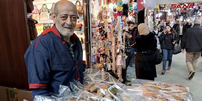 العم أبو خالد الذي احترف فن الطبخ الشامي واختص بصناعة المعجنات وتحضير اليالنجي بنوعيه ورق العنب والباذنجان، والكبة المقلية والمشوية، الصنفان اللذان اشتهر بإعدادهما منذ أكثر من أربعين عاما قال لـ سانا: “إنه رغم بلوغه الثالثة والستين من العمر لا يزال يمارس عمله بهمة عالية لتأمين متطلبات عائلته من جهة، ومزاولة المهنة التي أحبها من جهة أخرى”.