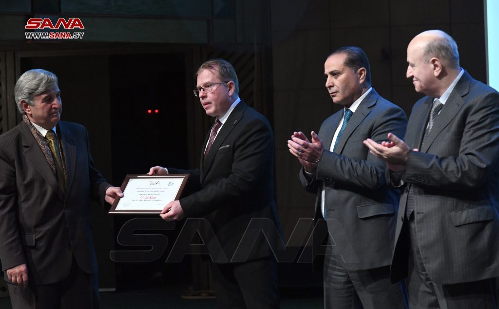 في نهاية الندوة تم تكريم عدد من الشركات الداعمة لهذا النشاط الاجتماعي من قبل القطاع العام المتمثل بالشركة السورية للنقل والسياحة والمؤسسة العربية للإعلان، والقطاع الخاص المتمثل بشركة “سما بل” للدفع الإلكتروني وشركة “واتس امب” لحلول الطاقة الكهربائية وشركة كبور ومعهد جلجامش وشركة الصباح لصناعة الأزياء.