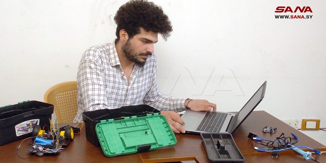 وبين خالد (22 عاماً) وهو طالب في كلية الهندسة المعلوماتية أنه شارك عام 2019 بمسابقة الأولمبياد الوطني للروبوت فئة مشاريع مفتوحة بدمشق وفاز فيها بالمرتبة الثالثة عن روبوت لممرض يتمتع بالذكاء الصنعي.
