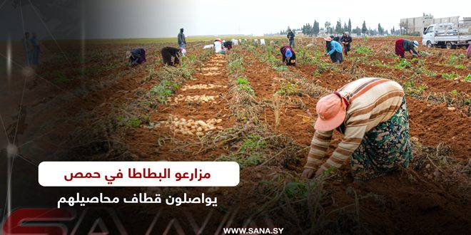 مزارعو البطاطا في حمص يواصلون قطاف محاصيلهم للعروة الخريفية