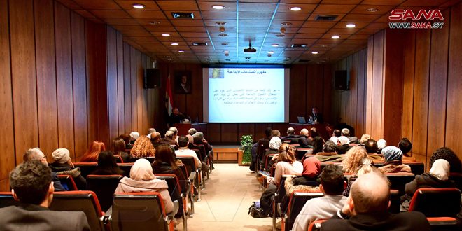وفي محور (الركائز الوطنية للصناعات الإبداعية في سورية) تحدث الدكتور خليل عجمي رئيس الجامعة الافتراضية السورية عن الصناعة الإبداعية (الجيل الرابع من الصناعة) وتحديات المنظومة الفكرية، مؤكداً أن الاقتصاد القائم على المعرفة والاقتصاد الإبداعي يشكل أساساً للتنمية الاقتصادية والاجتماعية في الدول التي تعاني من أزمات اقتصادية ونقص الموارد.
