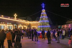 بمناسبة قرب حلول أعياد الميلاد ورأس السنة الجديدة شهدت الساحة الرئيسية في بلدة كفربهم بريف حماة وساحة كنيسة مار إلياس في مدينة إزرع بريف درعا الشمالي الشرقي مساء اليوم إضاءة شجرتي ميلاد بحضور فعاليات أهلية واجتماعية ودينية.