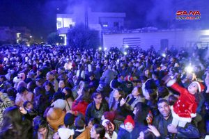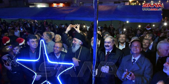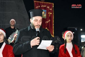 راعي كنيسة الروم الكاثوليك الأب نبيل نادر لفت إلى أن إنارة شجرة ميلاد كبيرة في البلدة تبعث في نفوس الكبار والصغار الفرحة والبهجة للتعبير عن السعادة والفخر بالوطن رغم كل الآلام والمآسي والحصار والتحديات والظروف الاقتصادية التي تواجهه مؤكداً أن سورية ستبقى مثل شجرة الميلاد دائمة الخضرة ويشع نورها في كل الأوقات والظروف بوحدة شعبها والتفافه حول قيادته وجيشه.