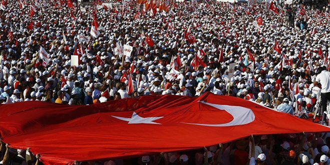 تظاهر عشرات آلاف الأتراك في مدينة إسطنبول تنديداً بسياسات رئيس النظام التركي رجب طيب أردوغان الاستبدادية، وتضامناً مع رئيس بلدية المدينة المعارض أكرم إمام أوغلو وذلك بعد صدور قرار قضائي يمنعه من ممارسة العمل السياسي قبل الانتخابات الرئاسية المقررة العام المقبل.