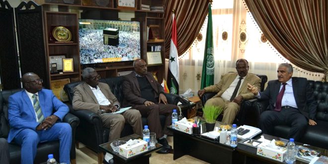 سبل تطوير علاقات التعاون وتنفيذ المشاريع المشتركة أبرز محاور لقاء وزير الزراعة والغابات في جمهورية السودان الدكتور أبو بكر عمر البشري والوفد الزراعي والفني المرافق للدكتور نصر الدين العبيد المدير العام للمركز العربي لدراسات المناطق الجافة والأراضي القاحلة “أكساد” اليوم، وذلك في مقر المركز بدمشق.