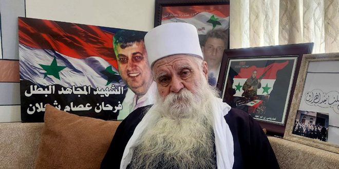 وبين الشيخ شعلان أن التضحية في سبيل الوطن واجب وطني على كل سوري، لافتاً إلى أن استهداف العدو الإسرائيلي للمناضلين لن يوقف المقاومة بكل أشكالها ضد المحتل.