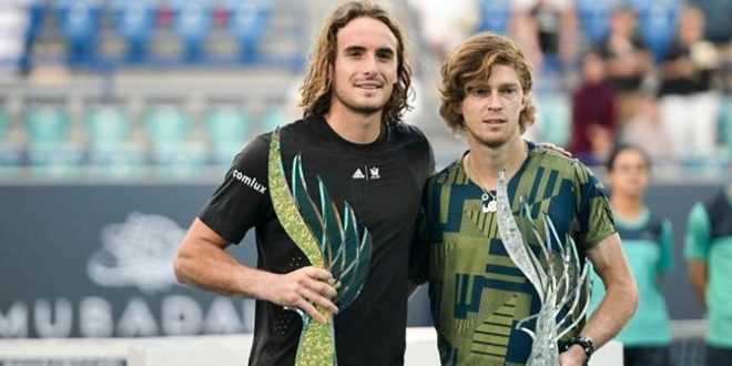 فاز اليوناني ستيفانوس تسيتسيباس على منافسه الروسي أندريه روبليف في نهائي بطولة (مبادلة) المقامة في العاصمة الإماراتية أبو ظبي.