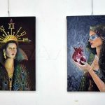 الشابة المشاركة بالمعرض هبة زامل قالت إنها شاركت بلوحتين استخدمت فيهما الألوان الزيتية واختارت الخلفية الداكنة لتبرز جمالية اللوحة، مبينة أن اللوحة الأولى تجسد امرأة اختارت قلبها ليكون مرشداً لها بدلاً مما تراه في عينيها، والثانية تحكي عن امرأة قوية، سلاحها وتاجها الوقت، وزيها مستوحى من الزمن العثماني.