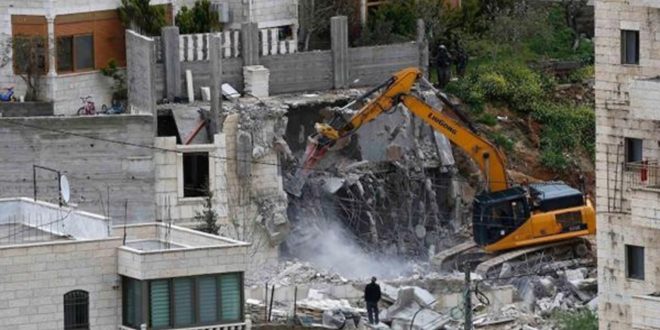 ولا يختلف المشهد في القدس المحتلة عن بقية مدن الضفة الغربية، ففي إطار مخططات الاحتلال لتهويد المدينة هدمت جرافات الاحتلال 211 منزلاً ومنشأة معظمها في بلدات سلوان والعيسوية وبيت حنينا وفق ما ذكر المتحدث باسم أهالي بلدة سلوان فخري أبو ذياب، مشيراً إلى أن الاحتلال يهدد بهدم 22 ألف منزل في القدس وهو ما يشكل ثلث منازل المدينة.