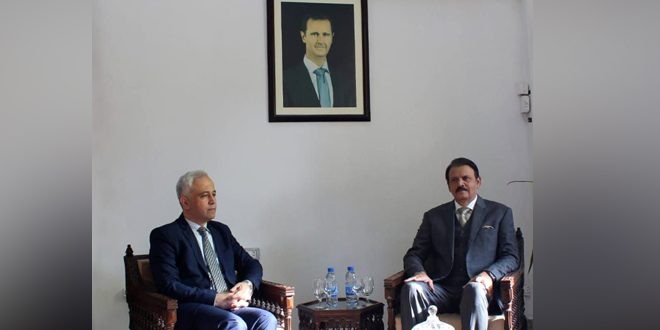 بحث وزير الاتصالات والتقانة المهندس إياد الخطيب مع سفير جمهورية باكستان الإسلامية بدمشق شاهد أختر سبل تعزيز العلاقات الثنائية بين البلدين في قطاع الاتصالات والمعلوماتية.
