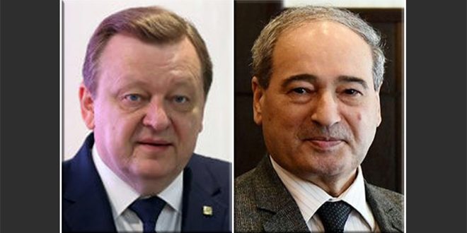 بدوره توجه الوزير ألينك بالشكر على تهنئة الوزير المقداد له، معبراً عن ارتياحه لمستوى العلاقات المتقدم بين البلدين في المجالات السياسية والاقتصادية والثقافية، ومشيراً إلى الدور المهم لوزارتي الخارجية في البلدين في المرحلة القادمة لمتابعة تنفيذ ما تم الاتفاق عليه خلال زيارة رئيس الوزراء البيلاروسي الأخيرة إلى دمشق.
