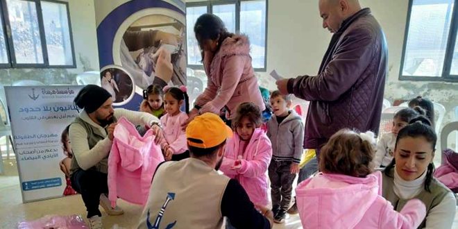وزعت مؤسسة مرساة التعليمية التنموية الخيرية في السويداء 962 معطفاً شتوياً على 24 روضة لرياض الأطفال في مختلف مناطق المحافظة، وذلك ضمن مبادرة بإشراف مديرية الشؤون الاجتماعية والعمل.
