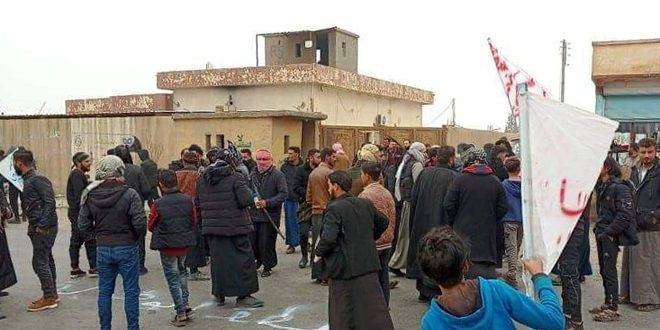 وذكرت مصادر أهلية لمراسل سانا أن أهالي بلدات الحوايج والكسرة والحصان وقصيبة خرجوا منذ صباح اليوم بمظاهرات ضد ميليشيا “قسد”، وقاموا بقطع الطرقات بالإطارات المشتعلة، وترديد هتافات وشعارات تطالب بطرد الميليشيا والاحتلال الأمريكي من منطقة الجزيرة، ومحاسبة قادة ما يسمى (مجلس دير الزور العسكري) التابع للميليشيا، وذلك على خلفية ارتكابهم الجرائم ونهب الثروات الوطنية وتقديمها للاحتلال الأمريكي.