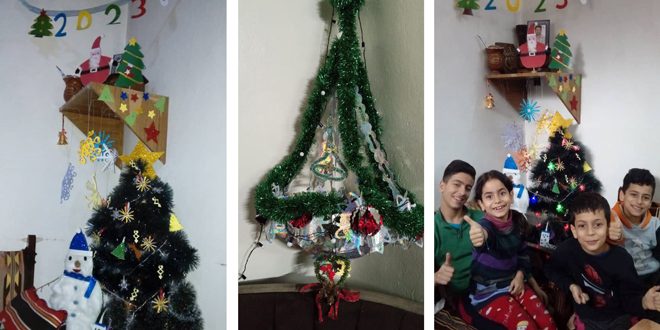 وفي تصريح لنشرة سانا الشبابية بينت العيسى أنها اعتادت منذ سنوات طويلة نصب شجرة عيد الميلاد وتزيينها وإضاءتها، لكن هذا العام وبسبب ارتفاع الأسعار وغلاء قطع الزينة المتعلقة بالشجرة قررت وبهدف إدخال الفرحة إلى قلوب أبنائها أن تصنع لهم الشجرة بنفسها يدوياً.