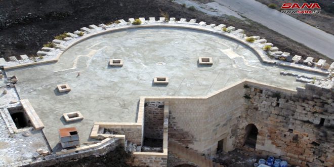 وأشار حنا إلى أنه تم خلال العام الماضي الانتهاء من المرحلتين الأولى والثانية من المذكرة المتضمنة أعمال الواجهة الرئيسية المطلة على الخندق لبرج الظاهر بيبرس، وبوابته الرئيسية، وقبوته، وكتلة الدرج المؤدي إلى سطح البرج، وكتلة الدرج المؤدي لبرج قلاوون، وكتلة بوابة الدرج المؤدي للرواق الغربي المملوكي، والواجهة المحيطة به، إضافة إلى الانتهاء من الستارة الشمالية المتضررة شمال برج الكنيسة، وتنفيذ عزل جديد وصرف مائي مطري، مبيناً أن المذكرة تهدف إلى التعاون والمساهمة بدراسة وتوثيق وترميم وصون وحفظ التراث الأثري السوري، حيث تم خلالها توزيع العمل على ثلاث مراحل.