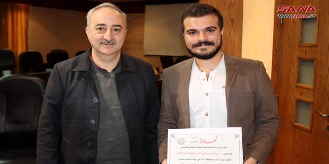 أما فيما يتعلق بالبحث العلمي المتميز للمنجد والذي نشر في مجلات أمريكية محكمة عالميا أيضاً، وحمل عنوان (الصفات السيفالومترية لمرضى سوء الإطباق من الصنف الثاني النموذج الأول في مرحلة الإطباق المختلط المتأخر في محافظة حمص) للشريحة العمرية من عمر 10 إلى 12 عاماً، وهي الفترة الذهبية للمعالجة التقويمية الهيكلية فقد أكد أن الهدف منه الوقوف على المعالم التشخيصية الأساسية لمرضى سوء الإطباق، الأمر الذي يتطلب منا كباحثين تكثيف الجهود العلمية والطبية والبحث لإيجاد حلول لأي حالة طبية بطرق علمية جديدة.