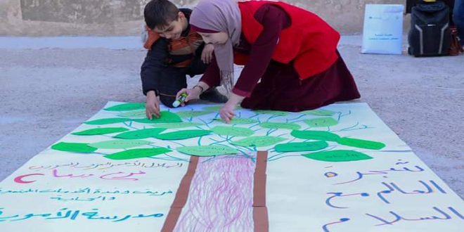 وبين الدكتور المسالمة أن متطوعي الفرع تناولوا على مدار شهرين 15 مساراً تمحورت حول التعارف وحقوق الأطفال والصداقة واستكشاف المشاعر، وما هو العنف، ليكون ختامها بمسار العالم مع السلام نفذت من خلاله أنشطة هدفها تبادل الأفكار والمناقشة حول السلام، وما يمكن للأطفال أن يفعلوه للإسهام في صنعه وحمايته.