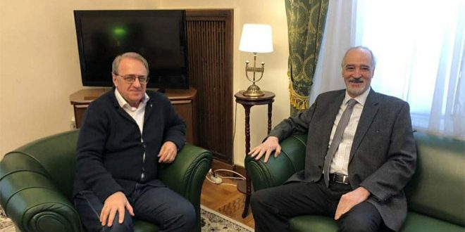 بحث الممثل الخاص للرئيس الروسي لشؤون الشرق الأوسط وبلدان إفريقيا، نائب وزير الخارجية ميخائيل بوغدانوف مع سفير سورية في موسكو الدكتور بشار الجعفري تطورات الأوضاع في سورية.