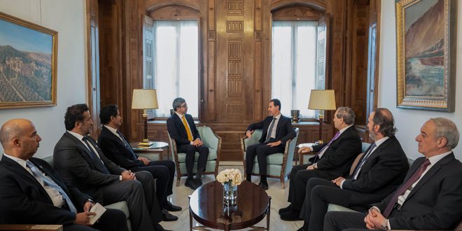 ونقل الوزير الضيف للرئيس الأسد تحيات سمو الشيخ محمد بن زايد آل نهيان رئيس دولة الإمارات العربية المتحدة، والشيخ محمد بن راشد آل مكتوم نائب رئيس الدولة، وأكّد أنّ الإمارات حريصة على تعزيز التعاون بين البلدين وتوسيع آفاقه، واستمرار التشاور والتنسيق مع سورية حول مختلف القضايا.