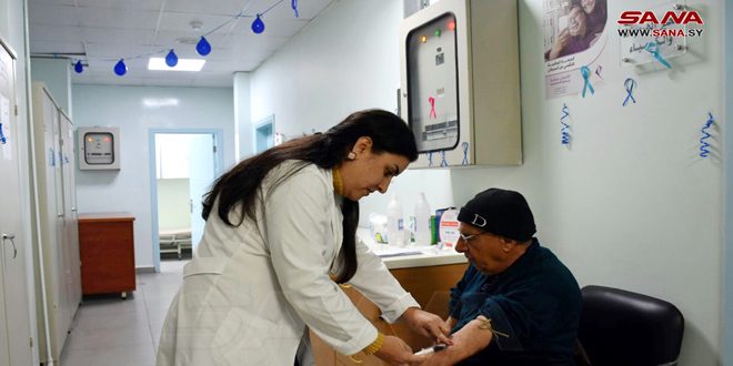 وبين الدكتور ياسر السمان المدير الطبي والمشرف عن سير الحملة في المشفى أنه بلغ عدد المستفيدين من خدمات الحملة لغاية اليوم (1076) شخصاً حصلوا على (1135) خدمة توزعت بين 513 خدمة تصوير شعاعي للثدي، و455 عينة دم للكشف عن سرطان البروستات، و167 عينة لطاخة عنق الرحم.