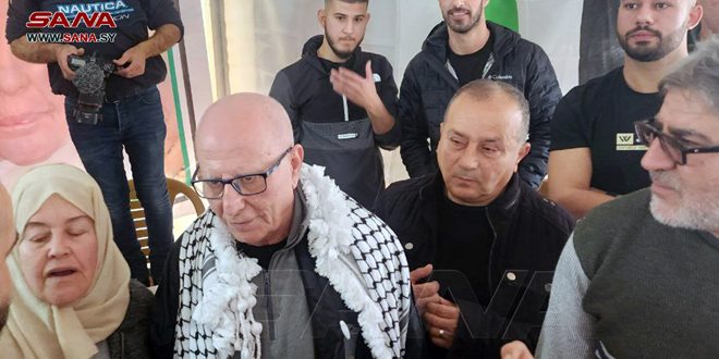 أكد عميد الأسرى الفلسطينيين المحررين كريم يونس أن الشعبين الفلسطيني والسوري متلاحمان بمواجهة الاحتلال الإسرائيلي، وسيواصلان النضال حتى تحرير الأرض.