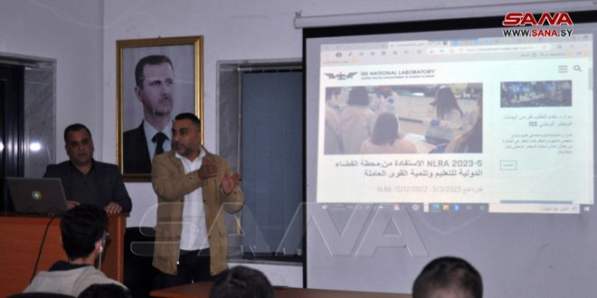 شارك مركز الفيزياء التطبيقية والعلوم الأساسية في مؤتمر بحثي عن بعد عبر برنامج (زوم) مع سفراء وخبراء محطة الفضاء الدولية، والمخبر الوطني لعلوم الفضاء، وذلك من مقر فرع الجمعية السورية للمعلوماتية في اللاذقية، وخلال المؤتمر الذي عقد مساء أمس بعنوان “الاستفادة من محطة الفضاء الدولية والمخبر الوطني للعلوم لإشراك الطلاب المميزين في البرامج البحثية، وتطوير مبادراتهم العلمية برعاية خبراء وعلماء المحطة”، جرت مناقشة مقترحات علمية وتقنية للاستفادة من المحطة والظروف الفيزيائية النادرة التي توفرها لإجراء التجارب العلمية، بما فيها انخفاض شدة الجاذبية الثقالية، وانخفاض شدة الحقل المغناطيسي الأرضي.