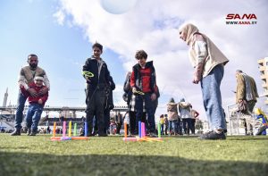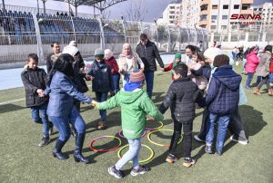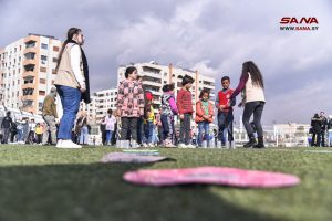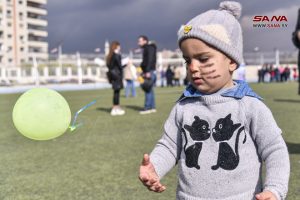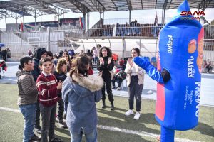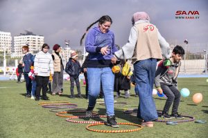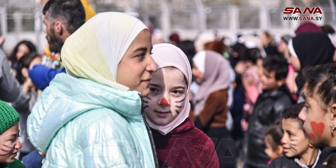 1000 طفل وطفلة من ذوي الإعاقة والأيتام، شاركوا في فعالية “نفرح سوا” الترفيهية لفريق عطاء التطوعي بالتعاون مع وزارة الشؤون الاجتماعية والعمل ومحافظة دمشق وذلك بملعب نادي المحافظة الرياضي في دمشق.