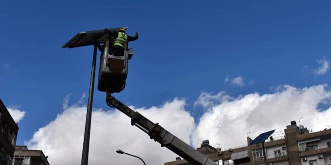ضمن خطة محافظة دمشق للاعتماد على الطاقة البديلة في إنارة الشوارع والحدائق العامة تم تركيب 1040 جهاز إنارة بالطاقة الشمسية، منها 850 جهازاً بالتعاون بين المحافظة ووزارة الإدارة المحلية، و190 جهازاً بالتعاون مع المجتمع الأهلي وفعاليات اقتصادية، وذلك في مناطق عدة بالمدينة خلال العام الماضي.