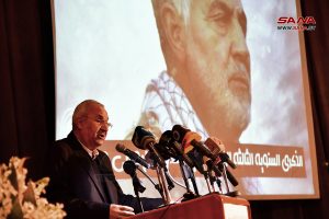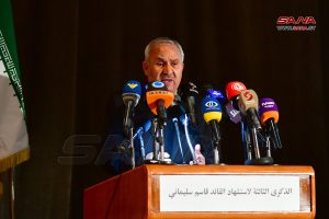 وأعرب الوزير الخليل عن عميق الامتنان للشهيد سليماني الذي استحوذت سورية على مساحة واسعة من اهتماماته، في كل موقع من مواقع العمل التي كان يشغلها طوال فترة حياته، مضيفاً: “الشهيد سليماني كان قائداً استثنائياً، دأب على أن يكون في الصفوف الأولى في أي عمل، عسكرياً كان أم إنسانياً، يضاف إلى ذلك تواضعه الذي عُرف به، ودبلوماسيته التي يُشهد لها، حيث كان يؤمن بأهمية السعي لمد جسور العلاقات الطيبة والتقارب بين دول وشعوب المنطقة”.