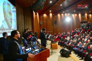 ومثل السيد الرئيس بشار الأسد في الفعالية وزير الاقتصاد والتجارة الخارجية الدكتور محمد سامر الخليل، وقال في كلمة: “سورية لن تنسى هذا الرجل المعطاء، وستبقى محطات حياته ملهمة لجميع الطامحين لإعلاء شأن أوطانهم، ولن تزول بصماته التي طبعها خلال مسيرة عمله على كل ركن من أركان العمل الحر المقاوم”.