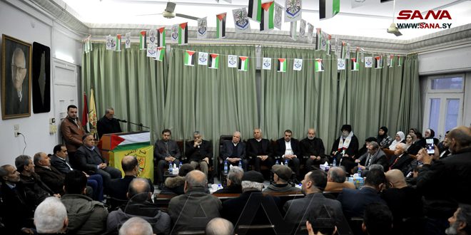 وقدم الأمين العام للجبهة الشعبية لتحرير فلسطين- القيادة العامة الدكتور طلال ناجي عرضاً عن انطلاقة الثورة الفلسطينية المعاصرة وأهدافها الثابتة في الوحدة الوطنية والمقاومة، وما قدمه الشعب الفلسطيني من تضحيات فيها منذ 58 عاماً أعادت للقضية الفلسطينية ألقها وحقيقة أنها قضية شعب يناضل من أجل حقوقه المغتصبة.