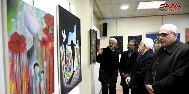 بمناسبة الذكرى السنوية الثالثة لاستشهاد الفريق قاسم سليماني ورفاقه، واحتفاء بيوم الشهيد الفلسطيني نظم اتحاد الفنانين التشكيليين الفلسطيني اليوم معرضاً تشكيلياً في صالة الرواق العربي بدمشق بعنوان “تحية إلى الشهداء”.