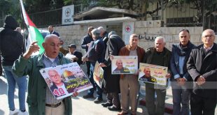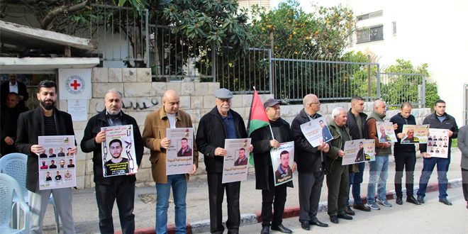 وذكرت وكالة وفا أن المشاركين في الوقفة أمام مكتب الصليب الأحمر في المدينة، والتي نظمتها القوى الوطنية الفلسطينية بالتعاون مع عدد من ذوي الأسرى، رفعوا العلم الفلسطيني، ولافتات وصوراً دعماً للأسرى في معتقلات الاحتلال وضرورة مساندتهم.