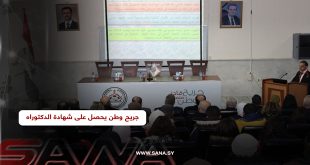وقال حمدان في تصريح لمراسلة سانا: إن تعرضي لطلق ناري نافذ في الرأس خلال خدمتي الإلزامية عاقني وأخرت حصولي على رسالة الماجستير، لكن طموحي كان أكبر من إصابتي وفور تجاوزي مرحلة الإصابة استعدت قواي وواصلت ما كنت بدأت به وحصلت على رسالة الماجستير، واليوم رافعت في رسالة الدكتوراه، لافتاً إلى ما قدمه له مشروع جريح وطن من مساعدات لوصوله إلى يوم النجاح والحصول على درجه الدكتوراه.