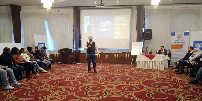 وتم خلال الورشة التي أقيمت بالتعاون مع برنامج الأمم المتحدة الإنمائي عرض النموذج الأولي لمنصة نظام معلومات سوق العمل في سورية، ومناقشة عدد من الاقتراحات التي تخدم تطوير المنصة وتبويبها بما يسهل الدخول إليها والتسجيل فيها ورفع الوعي بالعمل اللائق وزيادة المشاريع الريادية.