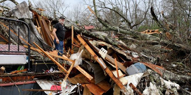 لقي ستة أشخاص مصرعهم، جراء عواصف رعدية وإعصار اجتاح وسط ولاية ألاباما الأمريكية أمس.