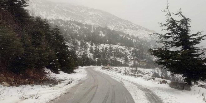 أعلنت إدارة المرور في وزارة الداخلية أن عدداً من الطرق في محافظتي حماة واللاذقية غير سالكة أو سالكة بصعوبة؛ بسبب تراكم الثلوج أو تشكل الجليد.