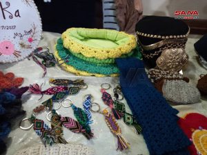 وبين مدير مشروع الرعاية الصحية للاجئين في جمعية البر عمرو الخالدي في تصريح لمراسلة سانا أن المعرض يضم أعمالاً يدوية متنوعة لمجموعة سيدات وافدات من محافظات سورية أخرى، وأعمالاً لسيدات من العراق.