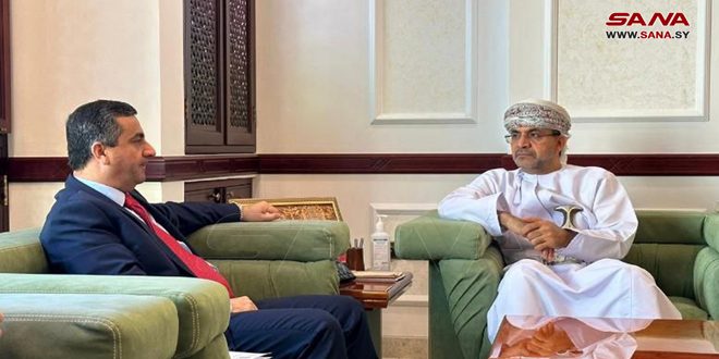 بحث وزير الثروة الزراعية والسمكية وموارد المياه في سلطنة عمان سعود بن حمود الحبسي مع سفير سورية لدى عمان الدكتور إدريس ميا سبل تعزيز علاقات التعاون وتبادل الخبرات بين البلدين الشقيقين في مجال القطاع الزراعي.