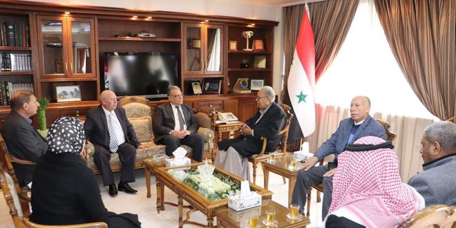 بحث وزير الزراعة المهندس محمد حسان قطنا مع نائب رئيس النقابة العامة للعاملين بالزراعة والري والصيد واستصلاح الأراضي المصرية عبد الفتاح سيد أحمد والوفد المرافق، تطوير وتنمية العلاقات والتعاون الزراعي بين البلدين، بما يخدم قطاع الزراعة والفلاحين في البلدين.