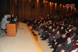 أقامت اللجنة الشعبية العربية السورية لدعم الشعب الفلسطيني ومقاومة المشروع الصهيوني بالتعاون مع مؤسسة القدس الدولية “سورية وتحالف القوى الفلسطينية”، ندوة حوارية بعنوان “المشروع الصهيوأمريكي والصراع الدولي على الممرات المائية… باب المندب نموذجاً”، وذلك في مكتبة الأسد الوطنية بدمشق.